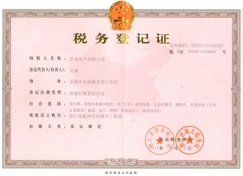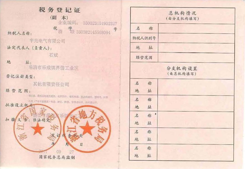 企业税务登记证副本