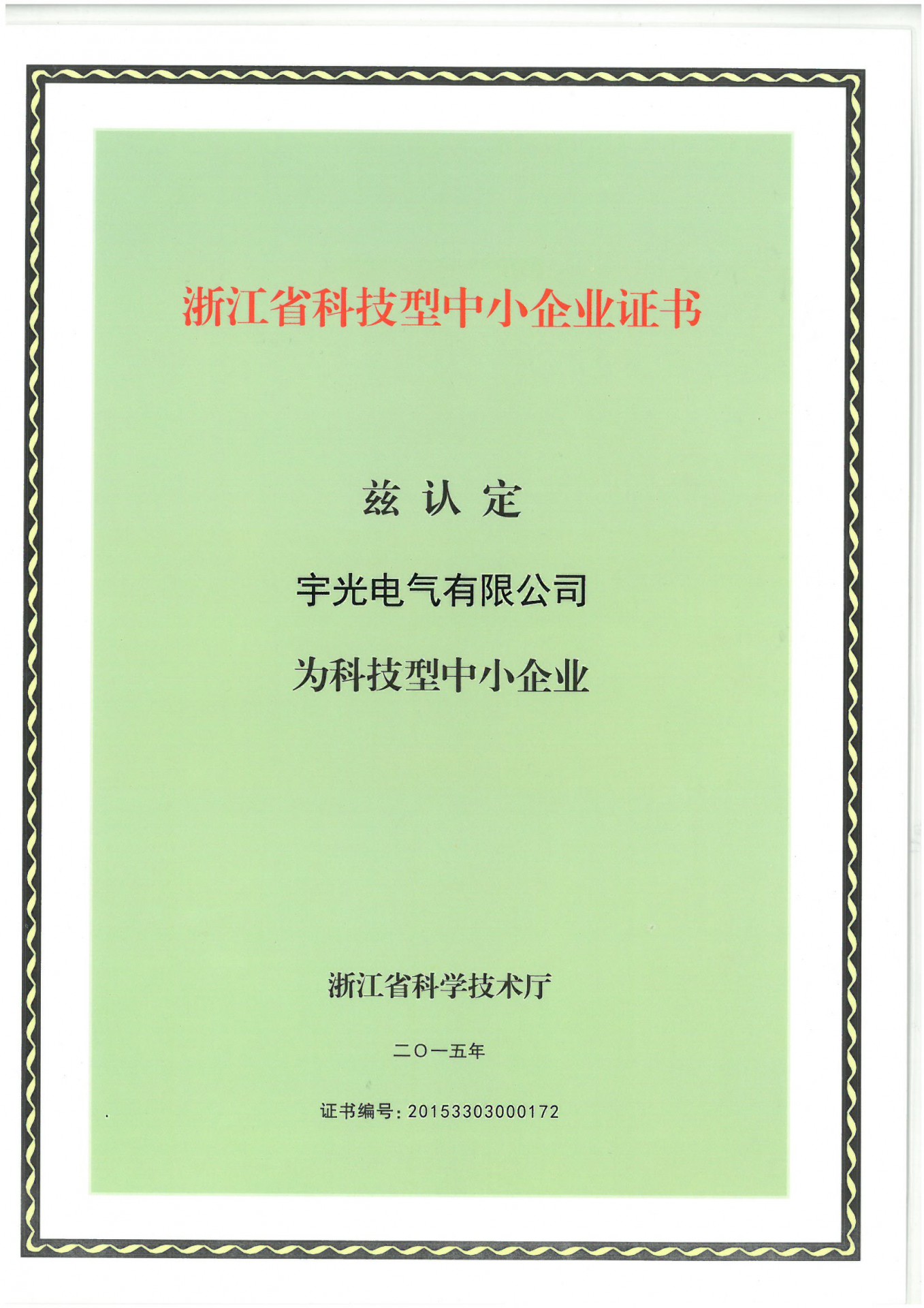 浙江省科技型中小企业证书