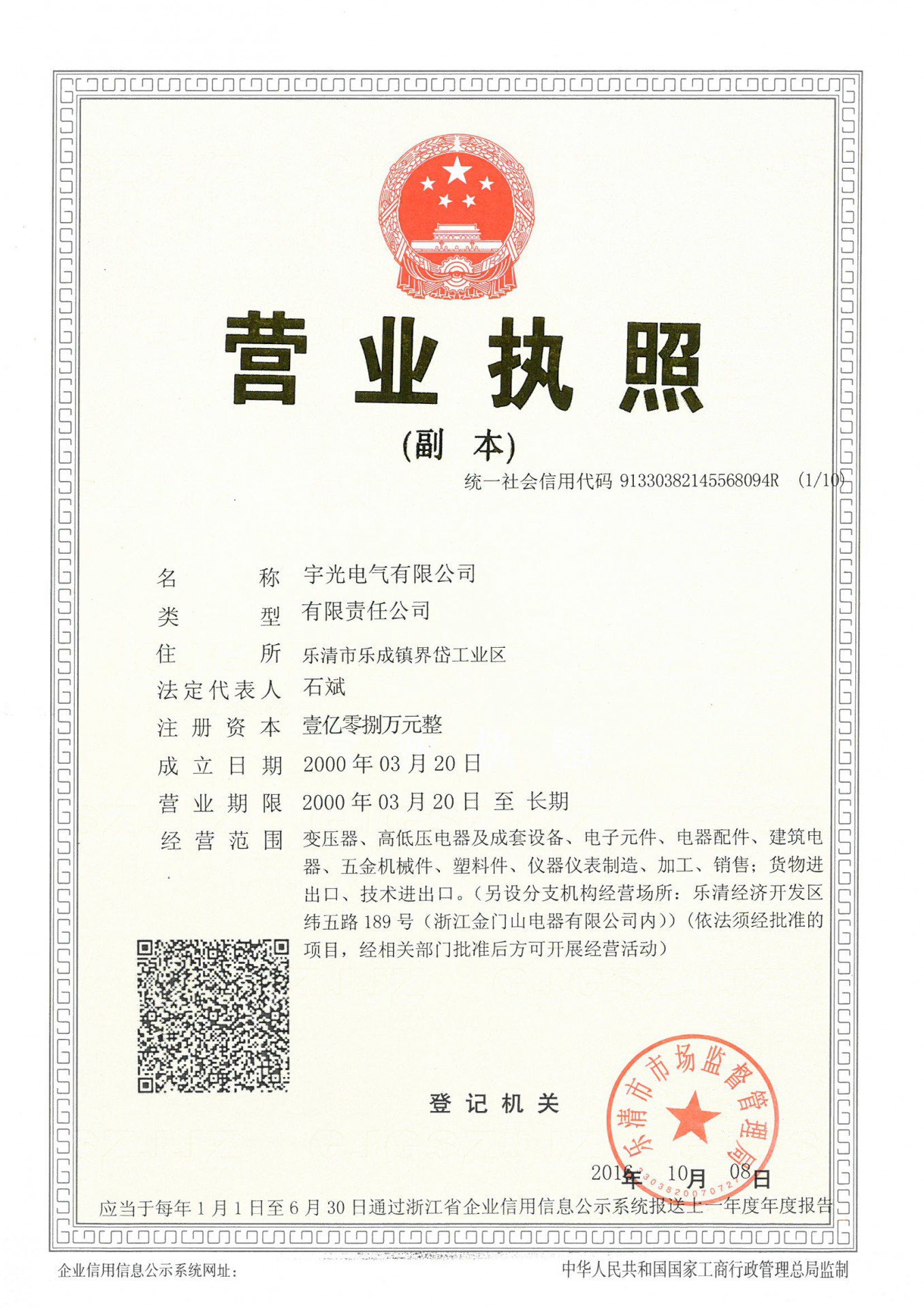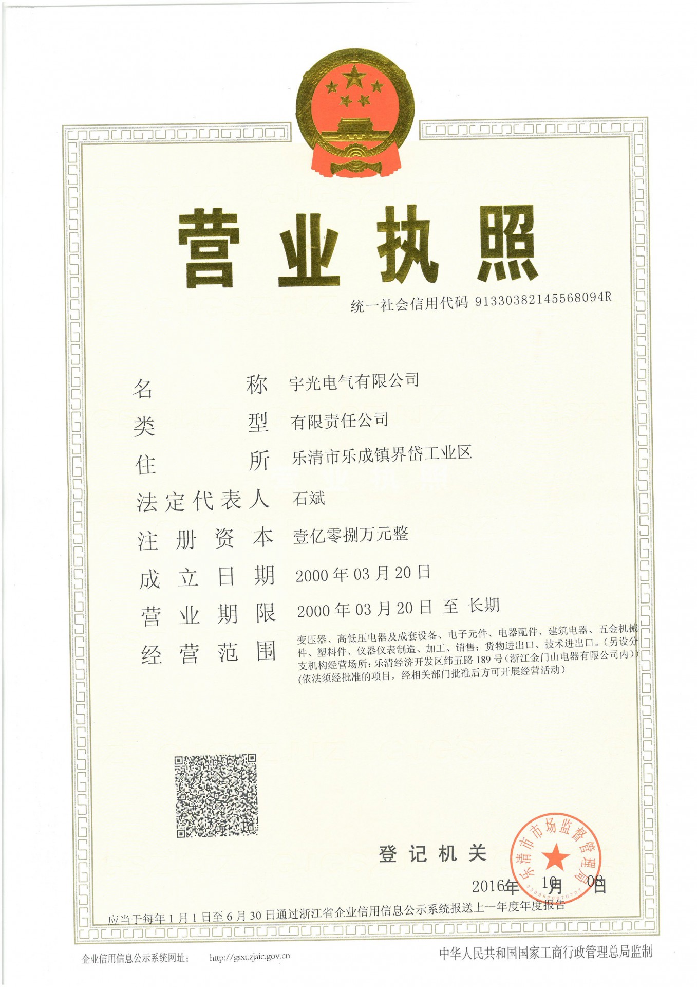 企业营业执照正本